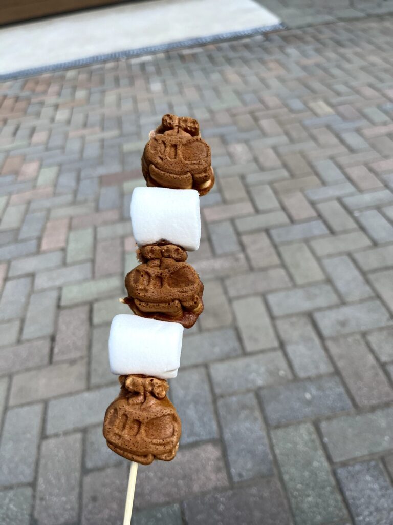 ゴンドラ型のかわいい焼き菓子とマシュマロが交互に。ほんのり甘くてやさしい味。
